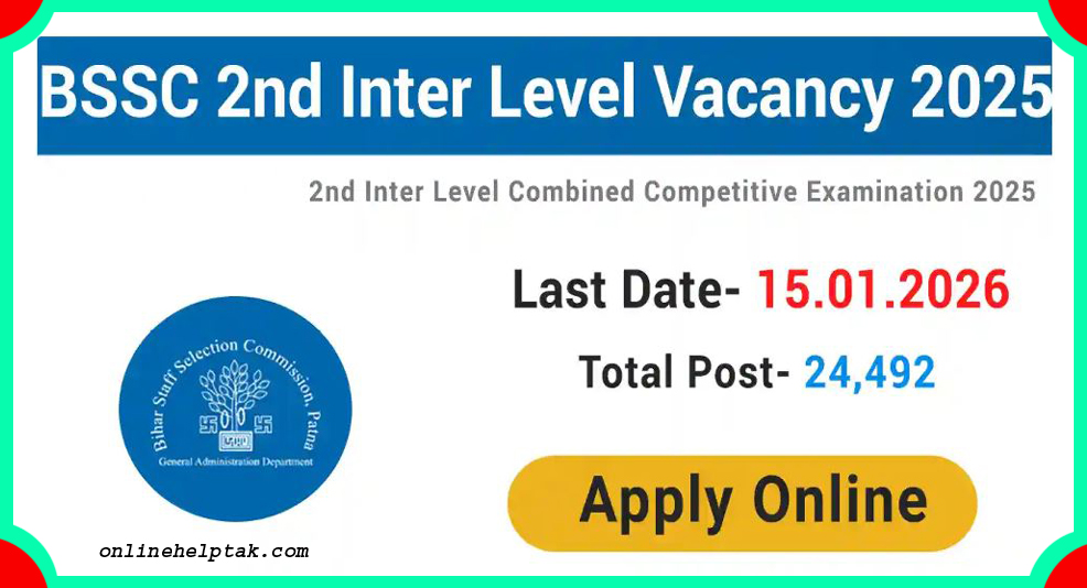 BSSC Bihar Staff Selection Commission invites online applications for recruitment to the post of LDC, Filaria Inspector, Assistant Instructor (Typing), Revenue Staff, Panchayat Secretary and Typist cum clerk for 24492 vacancies through 2nd Inter Level Combined Competitive Examination Advt No. 02/2023 (A). All eligible and interested candidates can apply online at BSSC official website bssc.bihar.gov.in or onlinebssc.com from 15th October 2025 to till the application last date 15th January 2026 for 2nd Inter Level Combined Competitive Examination Advt No. 02/2023 (A).